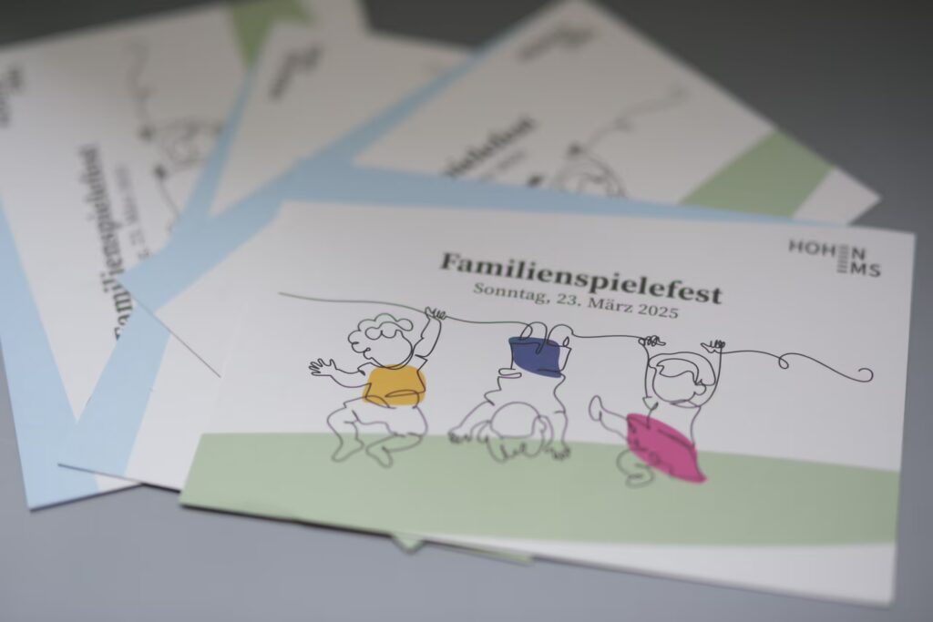 Das Design des Flyers vermittelt spielerische Leichtigkeit und familiäre Verbundenheit.
