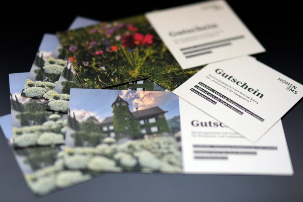 Die Gutscheine der „Artenvielfalt“-Initiative in Hohenems zeichnen sich durch ein modernes und nachhaltiges Design aus.
