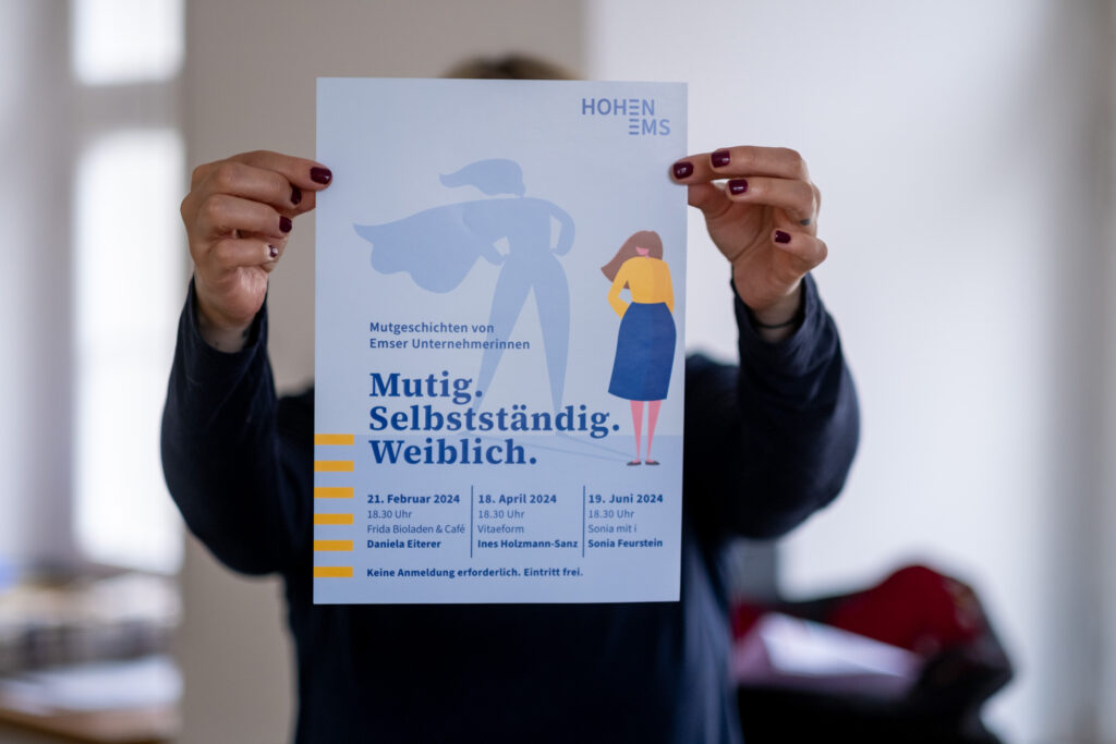 Das Design der Drucksorte zur Veranstaltungsreihe „Mutig. Selbständig. Weiblich.“ ist ein wahres visuelles Statement.